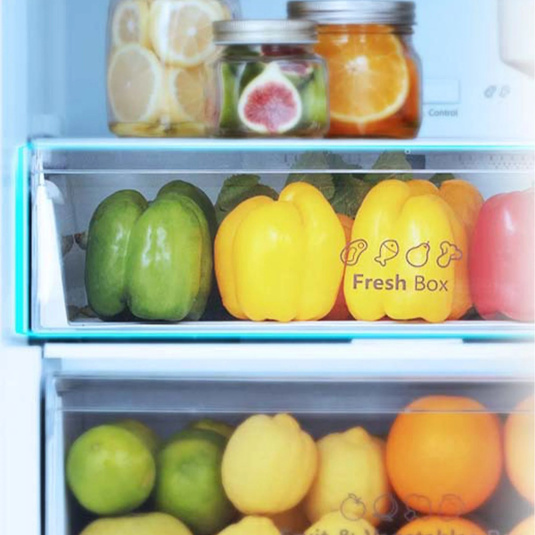 Grande cassetto per frutta e verdura con regolatore di umidità.