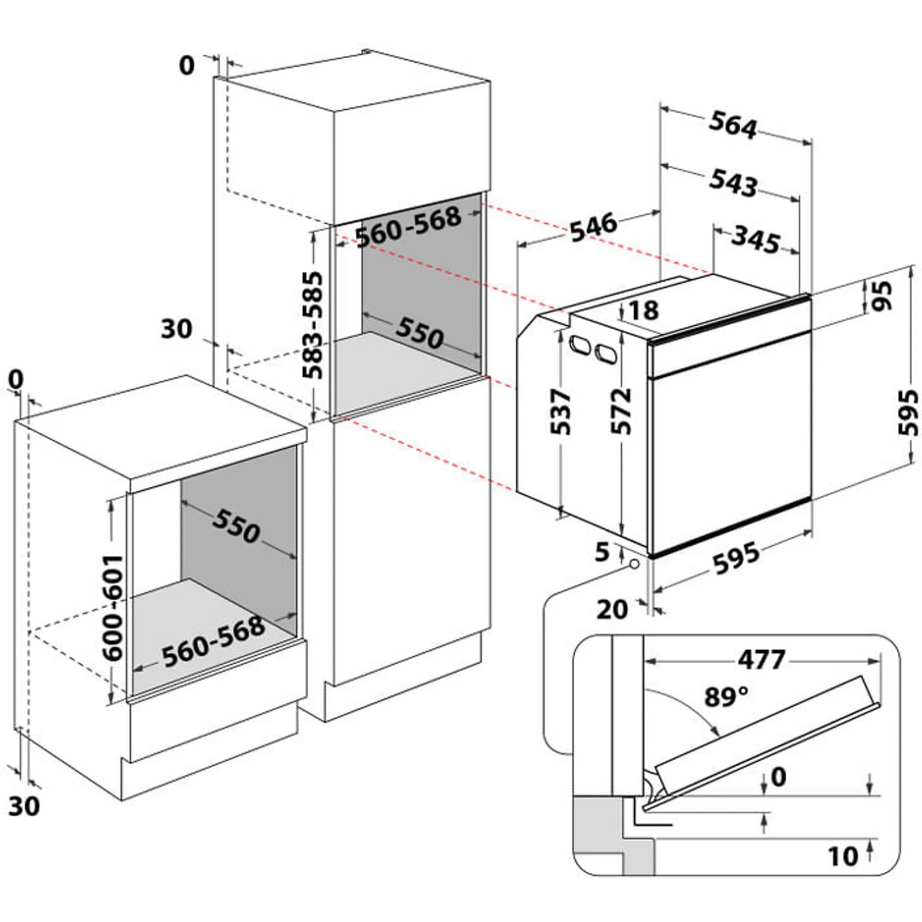 FORNO INCASSO, 1x teglia standard, 1x teglia profonda, 1x griglia