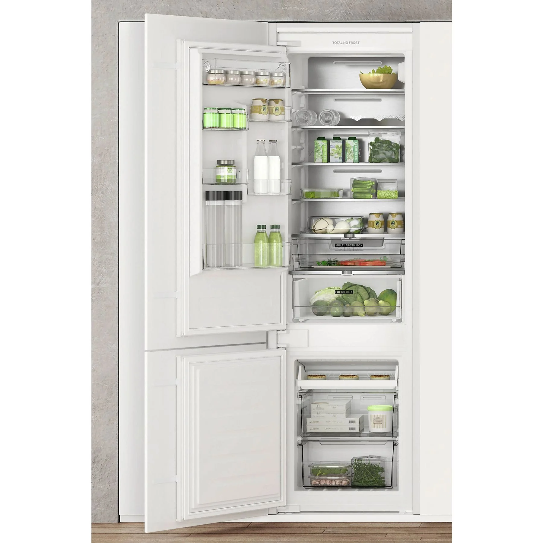 Caratteristiche di questo frigorifero combinato da incasso Whirlpool: colore bianco. Modello alto e capiente, adatto per le esigenze di tutta la famiglia. Ripiani in vetro, robusti ed eleganti al tempo stesso. Flusso d’aria regolare e uniforme all’interno dell’elettrodomestico, per una ventilazione potenziata. Sensori 6° SENSO che abbassano automaticamente la temperatura all’interno dell’elettrodomestico quando vengono introdotti nuovi alimenti, riducendo così il consumo di energia elettrica.